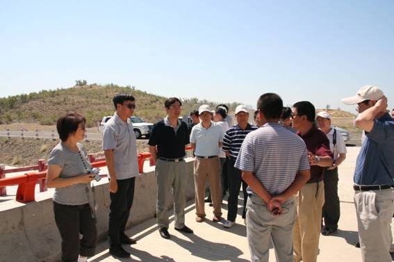调研组专家听取“引额供水”工程170km长沙漠明渠的情况介绍